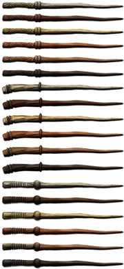 Una varita es un objeto mágico a través del cual un mago o una bruja utiliza para realizar sus poderes mágicos. La mayoría de los hechizos se hace con la ayuda de una varita, aunque es posible llevar a cabo sin una mágica. Las varitas tienen núcleos diferentes, madera, las longitudes y la flexibilidad. Estos factores, junto con la experiencia de la vida del propietario y la capacidad mágica, se combinan para definir el carácter de una varita. Como resultado, no hay varitas dos son exactamente iguales.