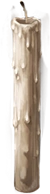 The candle is located on the mantle above the fireplace, on the right-hand side.