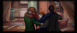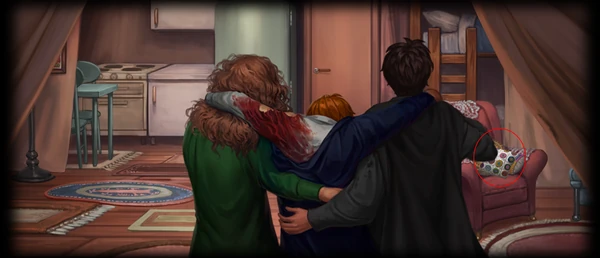 Harry watched, horrified, as she tore open Ron’s shirt. He had always thought of Splinching as something comical, but this ... his insides crawled unpleasantly as Hermione laid bare Ron’s upper arm, where a great chunk of flesh was missing, scooped cleanly away as though by a knife.