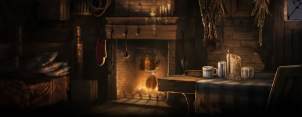 You can hear the crackling of fire with the occasional creak of the floorboards.