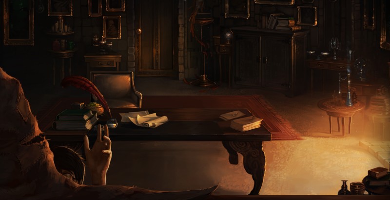 They stepped off the stone staircase at the top and Professor McGonagall rapped on the door. It opened silently and they entered. Professor McGonagall told Harry to wait, and left him there, alone. |