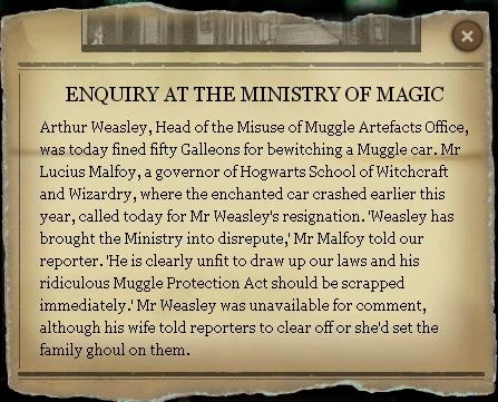 - Closer Look: the paper on the desk next to the tree is the article about Arthur Weasley.